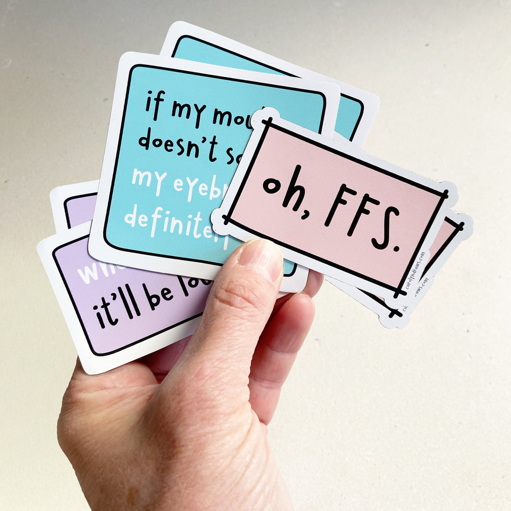 Mix and match your 6 fave stickers and SAVE -- 6 for the price of 5! Simply list your picks in the Notes to Seller at checkout and we'll do the rest.